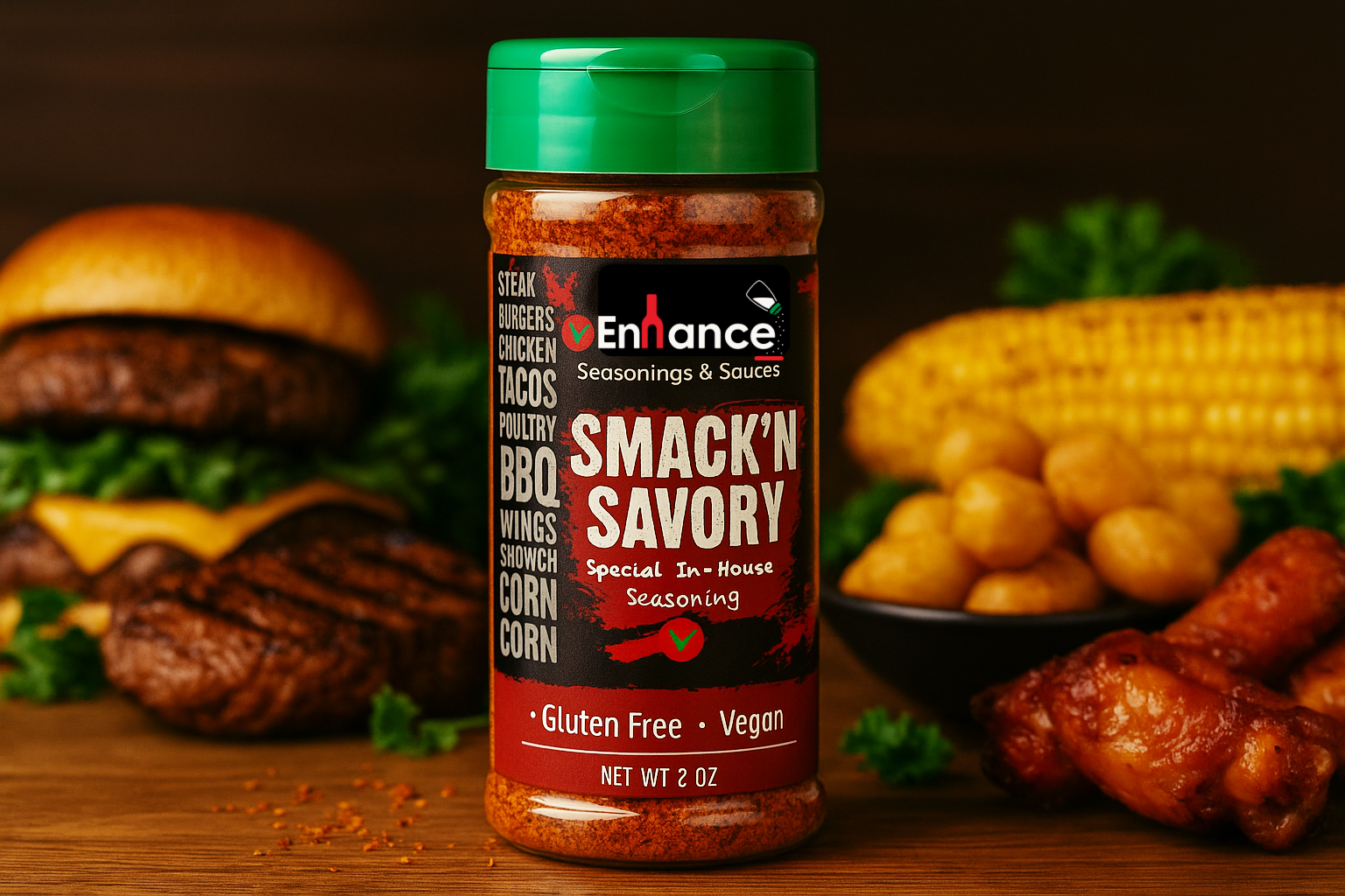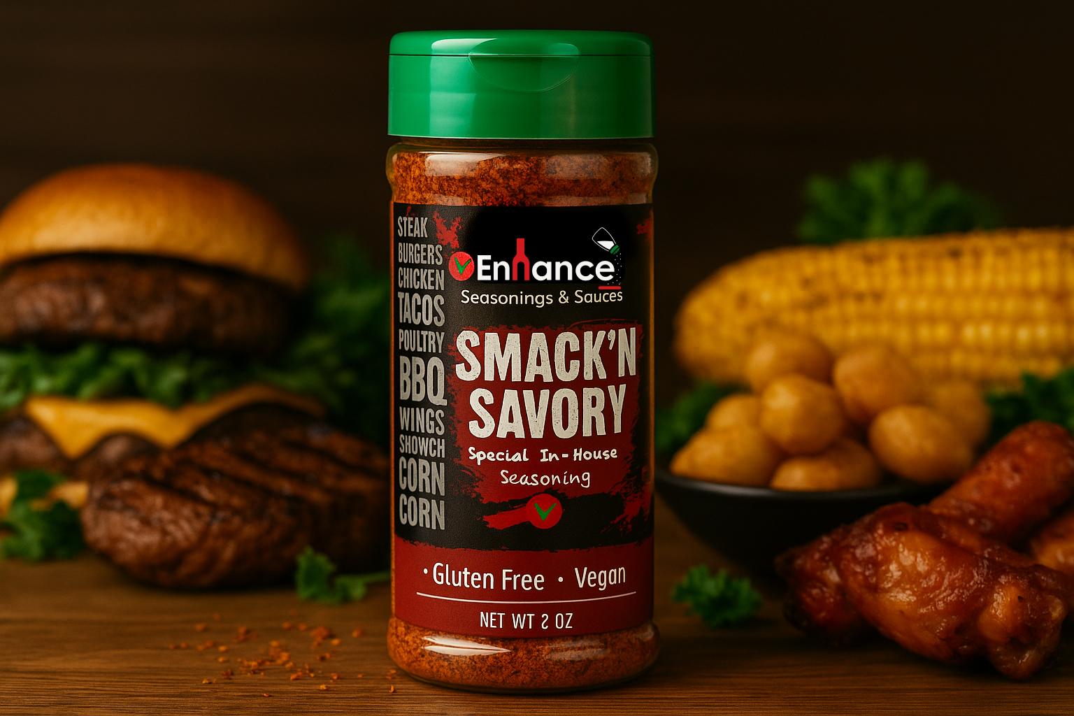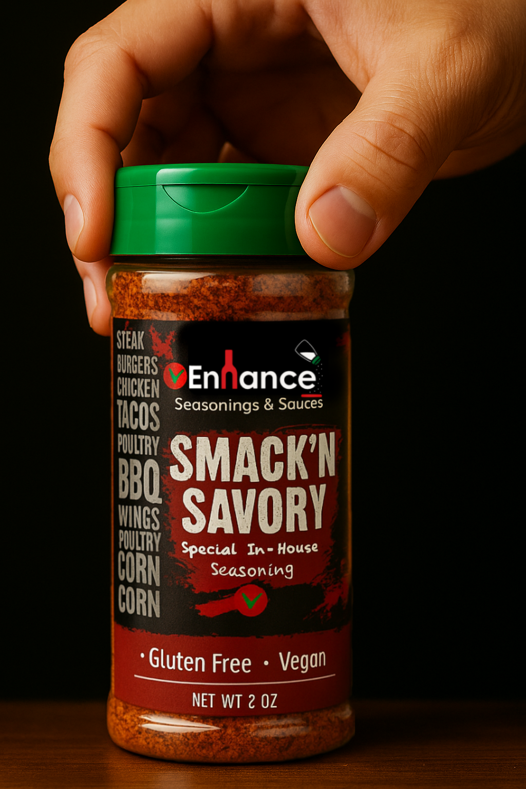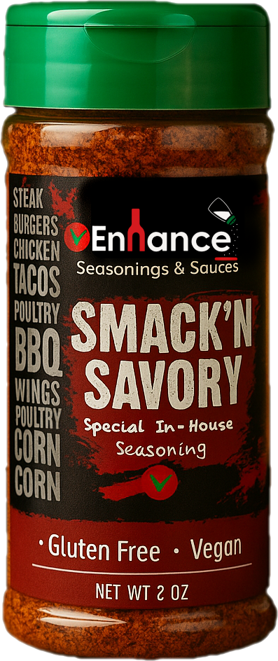 A bold and flavorful all-purpose seasoning designed to elevate everyday cooking. Smack’n Savory blends savory herbs, spices, and balanced heat to bring out the best in chicken, steak, seafood, vegetables, and more.